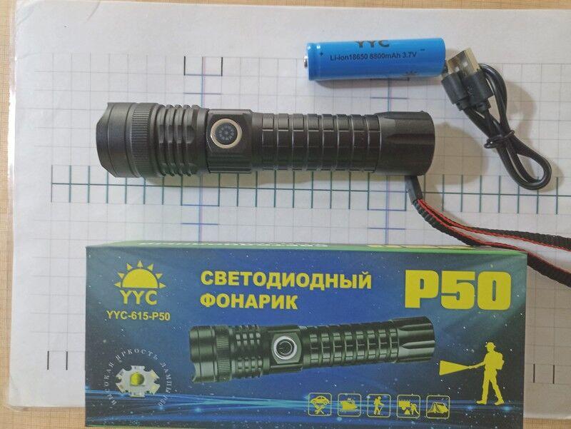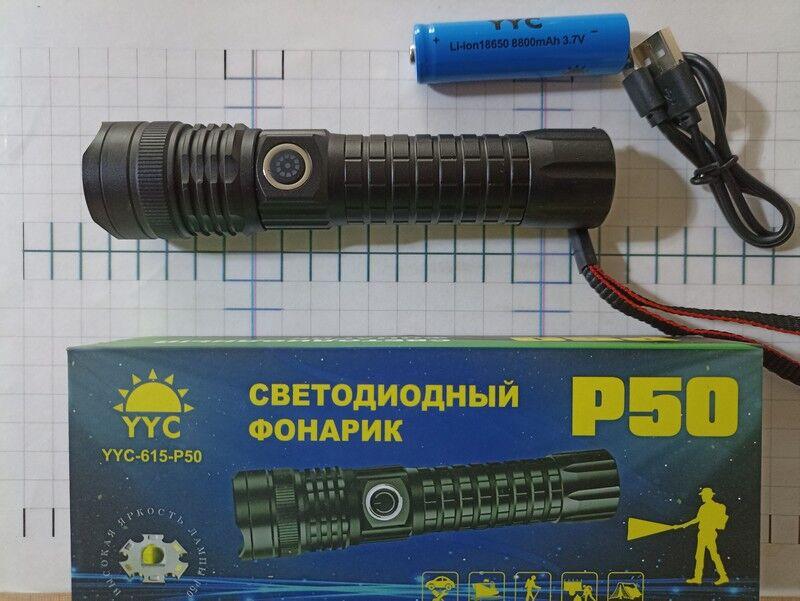 615 фон ручн аккум-батар " YYC-615-P50 1 режим " диод P50 акб 18660 micro - кнопка ВКЛ-ВЫКЛ - 1 режим ..