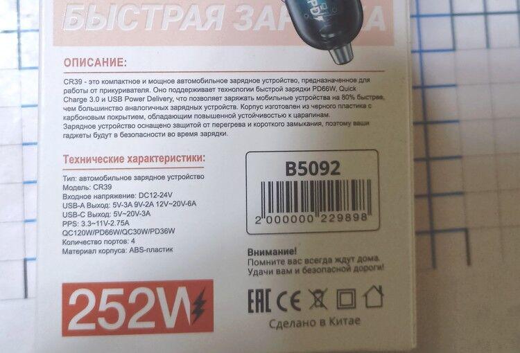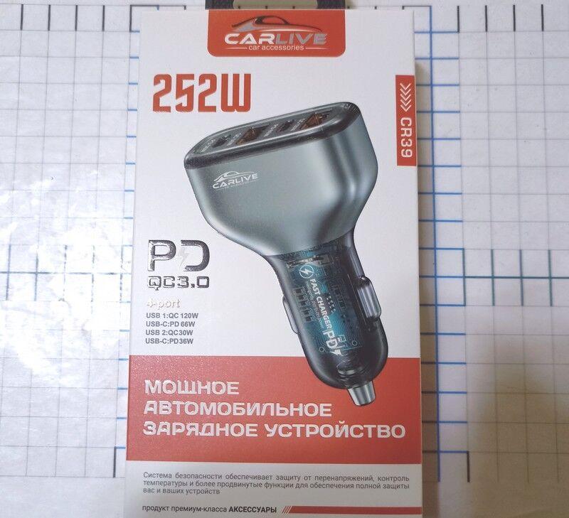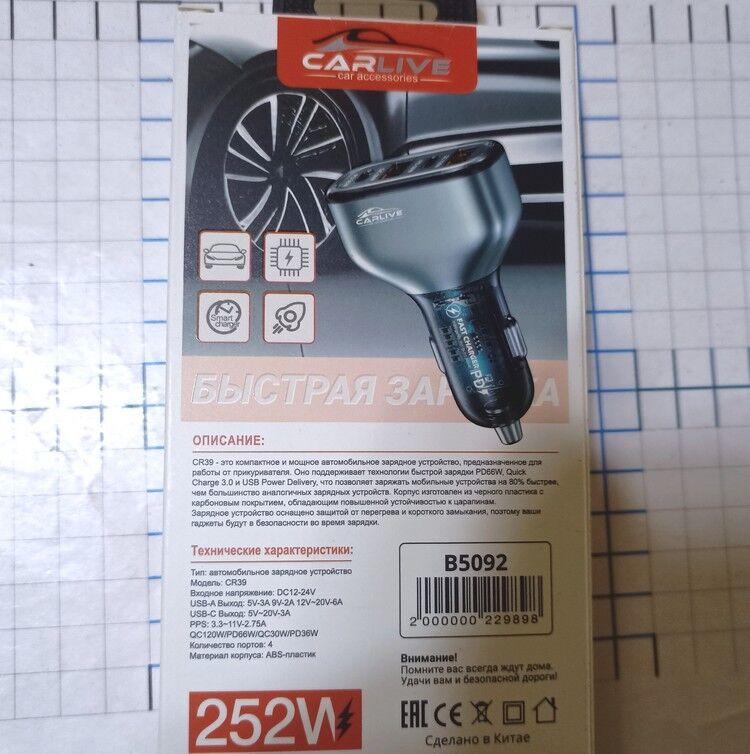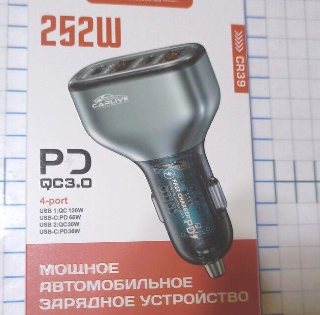 39 АЗУ USB на 4 гнезда " CR 39 Carlive 3Usb QC 3A + 1TypeC PD36W " ( 3,1 A держит QS- быстрая есть )