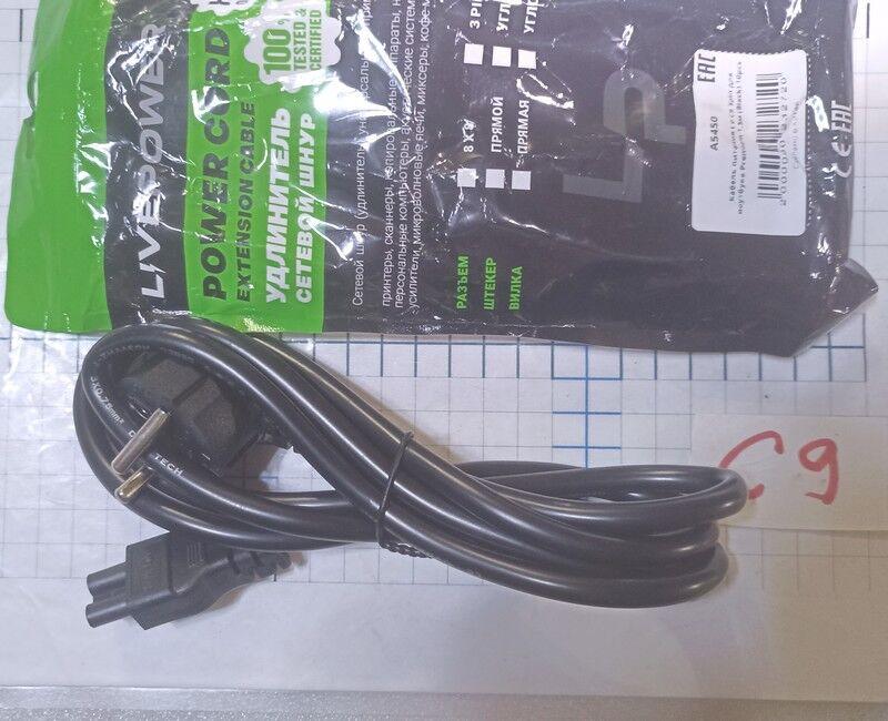 кабель питания тройной закругленный ноутбучный " 757 " С9 1,5 метра в зеленом пакете
