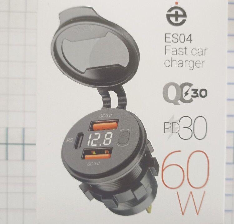 04 азу USB под монтаж 3 гнезда 2USB+ Typec ES04 DEEPSI (Круглый) QC3.0 + PD20W + QC3.0 + вольтметр