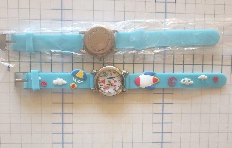 часы наручные детские " резиновый ремешок - стрелки - Ракета - парашют ".