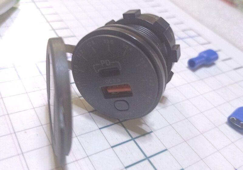 02 азу USB под монтаж 1USB + type C AC 02 (Круглый) QC3.0 +PD + клавиша вкл/выкл ,