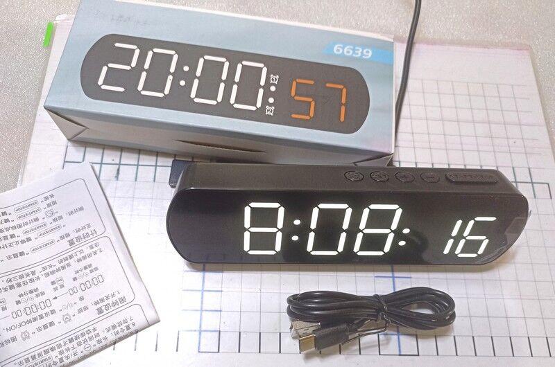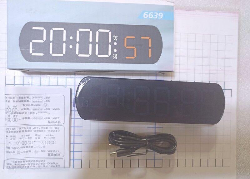 6639 часы настольные 6639 черный корпус белое свечение .
