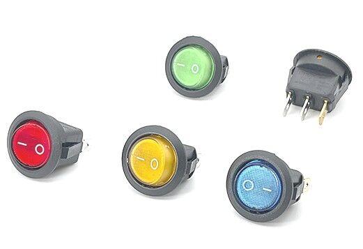 клав. Перекл. кругл. KCD1-204/N ( с подсветкой ) 220V КРАСНЫЙ круглый 3 ноги 3A 250V .