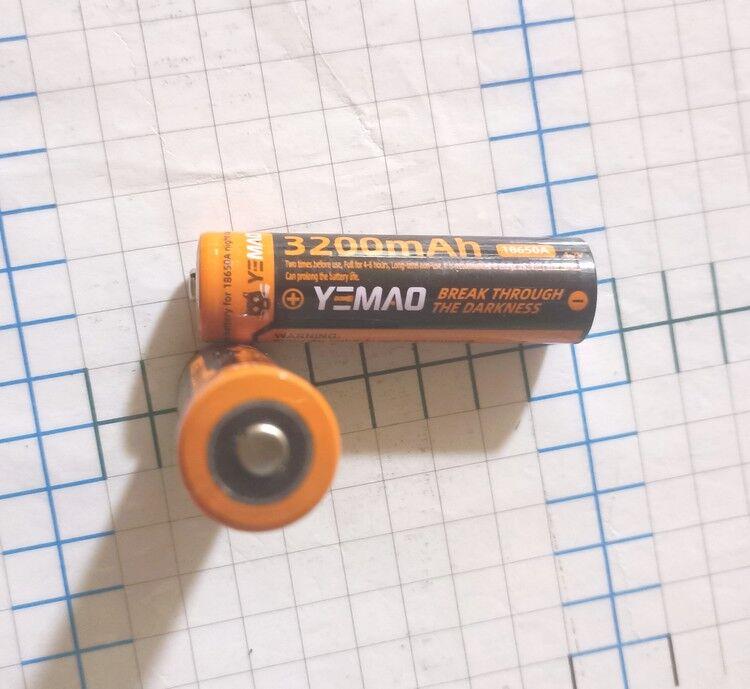 акб LI-ion 18650 Китай " YEMAO 3200 maH с носом " ( тест емкость 2500 ма ) .