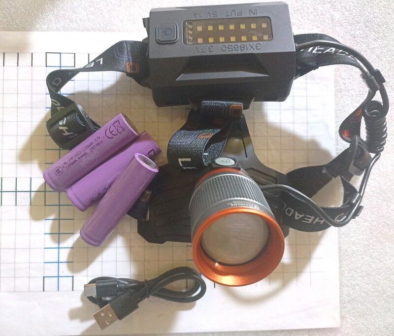 6081 фон налоб аккум " BLESKLUX BL-T 6081 -PM 30 - TG 1 режим Вкл-Выкл Power Bank " диод TG 3 акб 18650 зарядка Type-C
