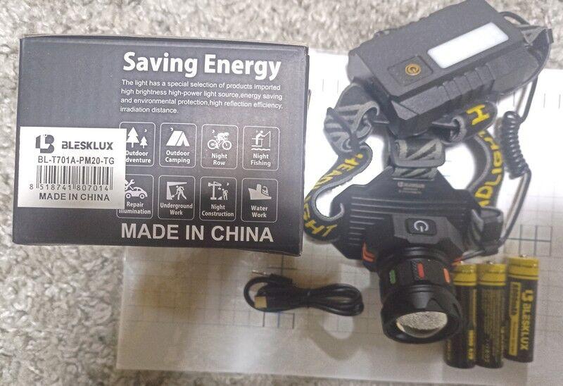 701 фон налоб аккум " BlekLux BL-T 701 A PM-20 TG Power Bank " диод TG 3 акб 18650 зарядка Type-C