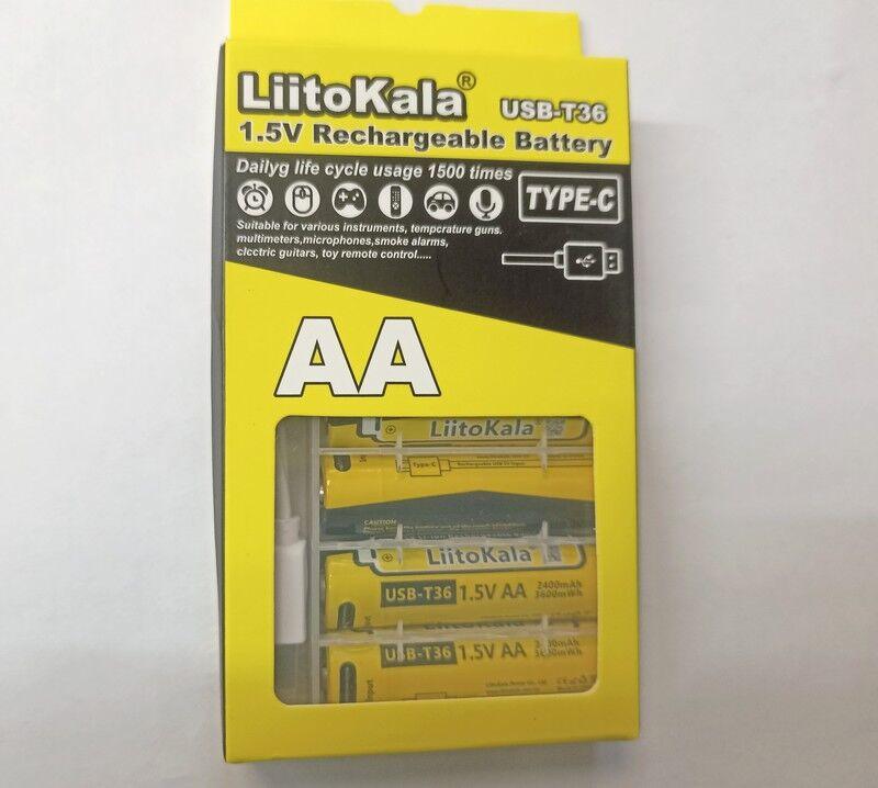 акб LiitoKala AA 1,5V USB T36 ( 2400maH, ,Li-ion, гнездо зарядки Type C ) 1 кабель зарядки на 4 акб! .