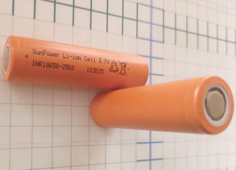акб Li-ion 18650 2500mah " SunPower INR 2500mAh высокотоковый - оранжевый " ( тест- 2500maH , 14 A до 3-х вольт, 15 Ом)