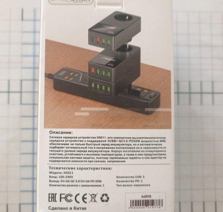 5011 сзу USB " H-5011 3USB + TypeC QC3.0+PD c ПРОХОДНОЙ РОЗЕТКОЙ ( быстрая - есть )