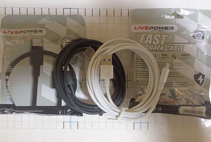кабель TYPE-C - USB 70 " RC 70 Live Power " в пакетике черные и белые 2 метра
