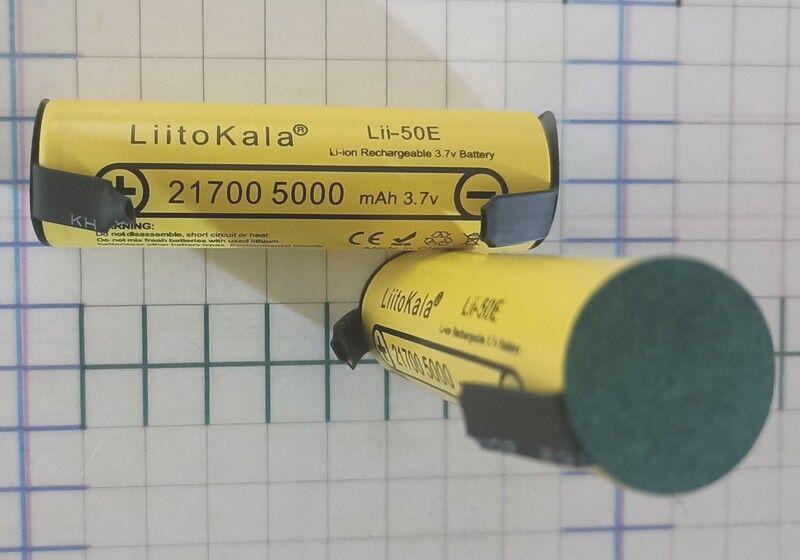 акб Li-ion 21700 Liitokala 5000 mah " Liitokala Lii-50E - XS С КЛЕММАМИ " ( протестирован 4900 mah )