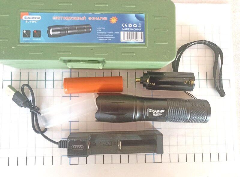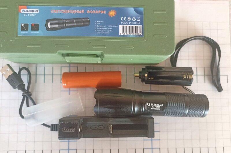 6007 набор ручной BL-F 6007 2 диода Красный + Белый свет акб 18650
