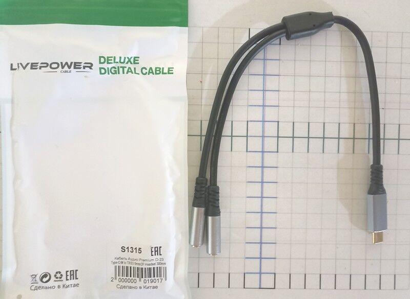 переходник TypeC - 2 гнезда наушников ( TRS 3.5 F ) D23 30 cм Premium