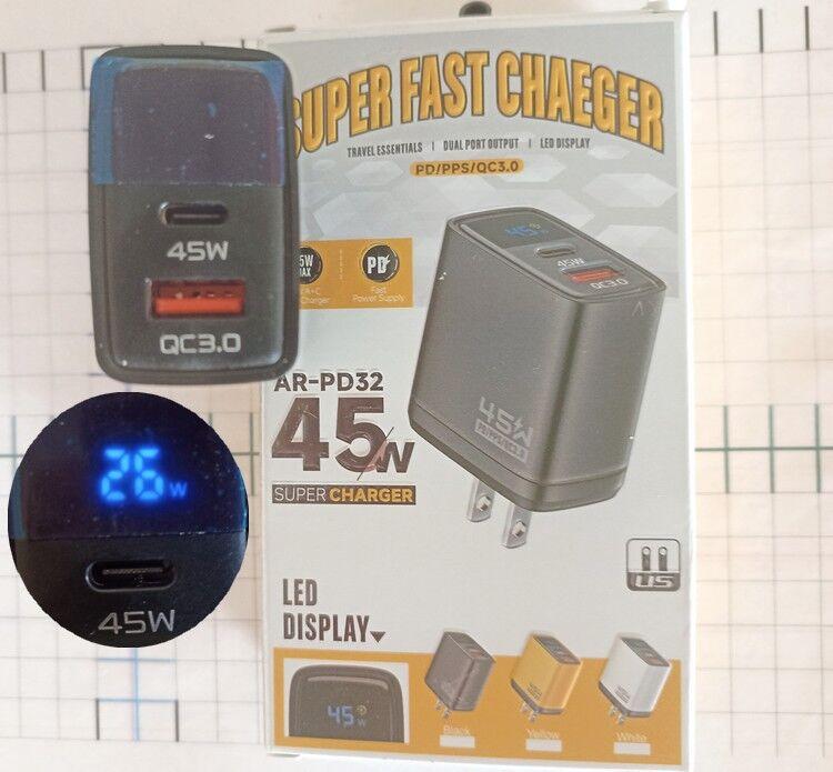 32 сзу USB " AR -PD 32 2 гнезда 45 W USB + Type C(PD) Дисплей с Ваттами " быстрая есть
